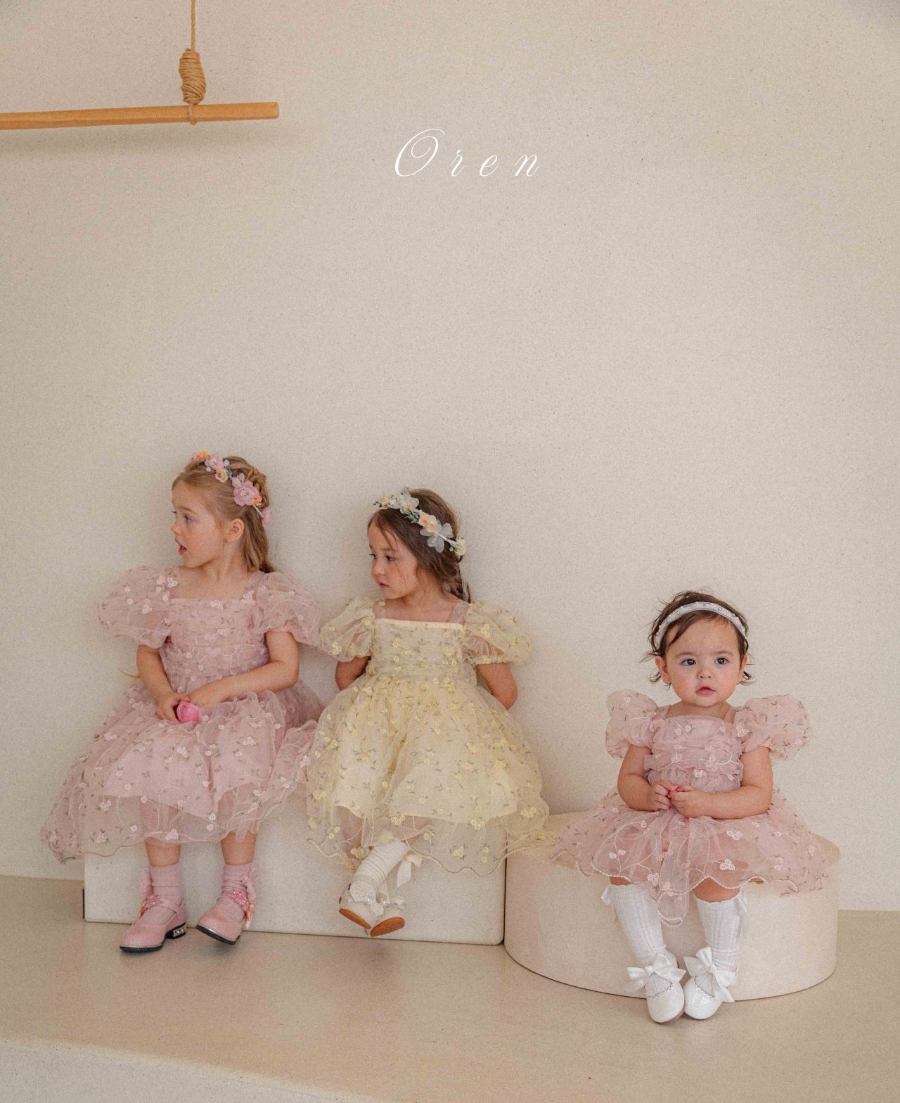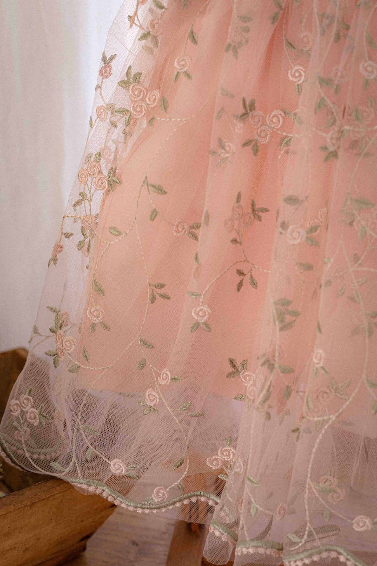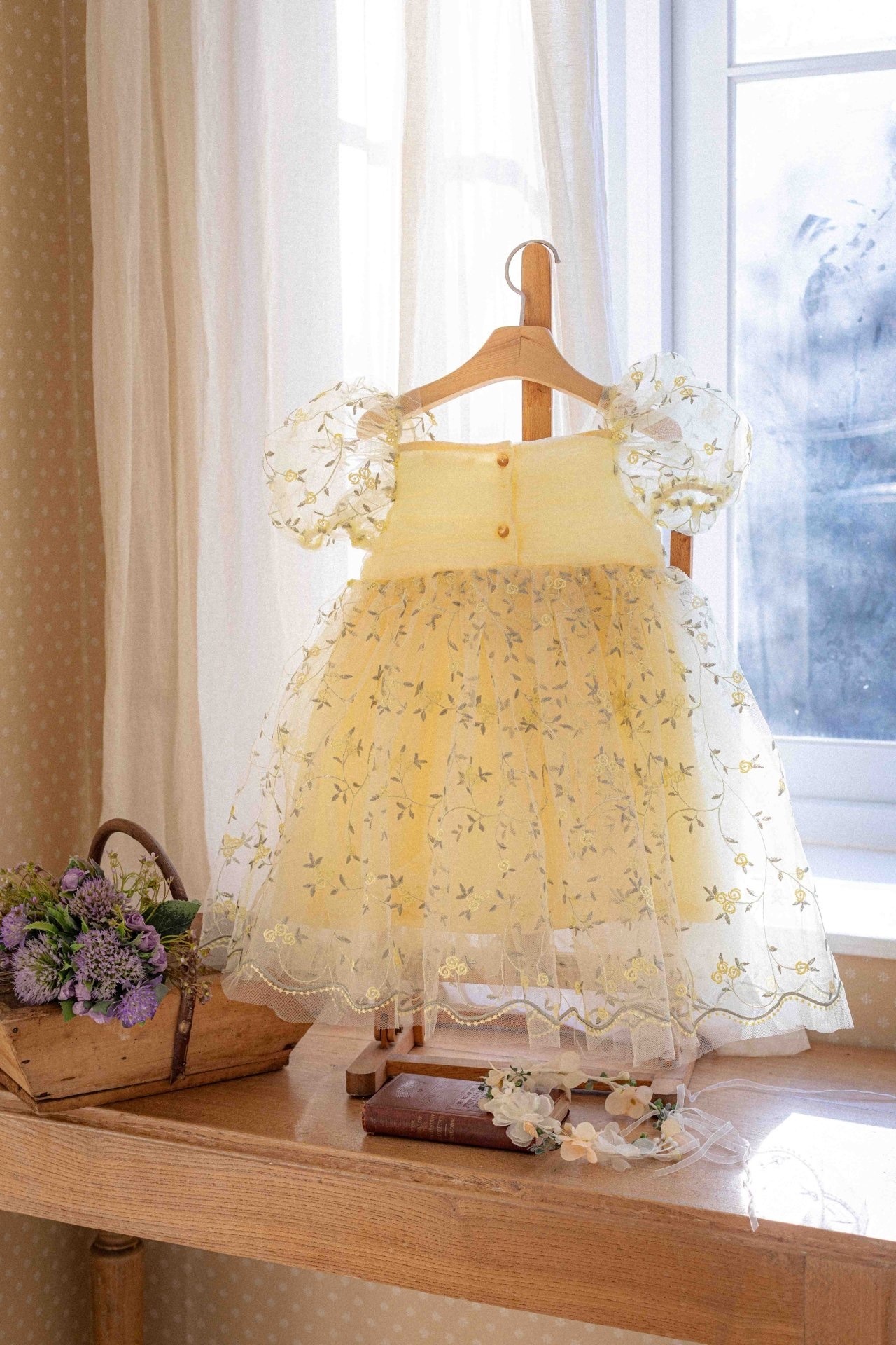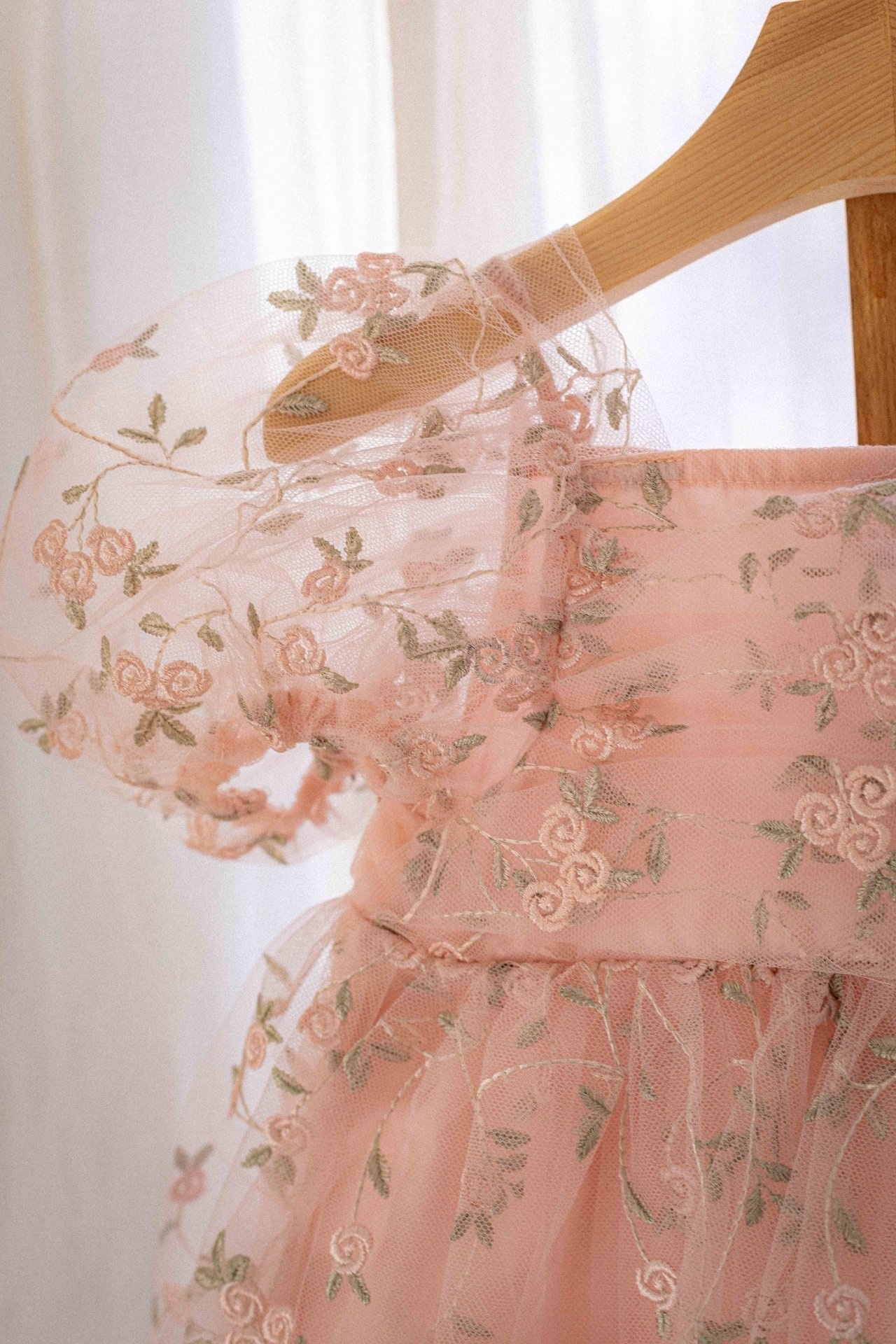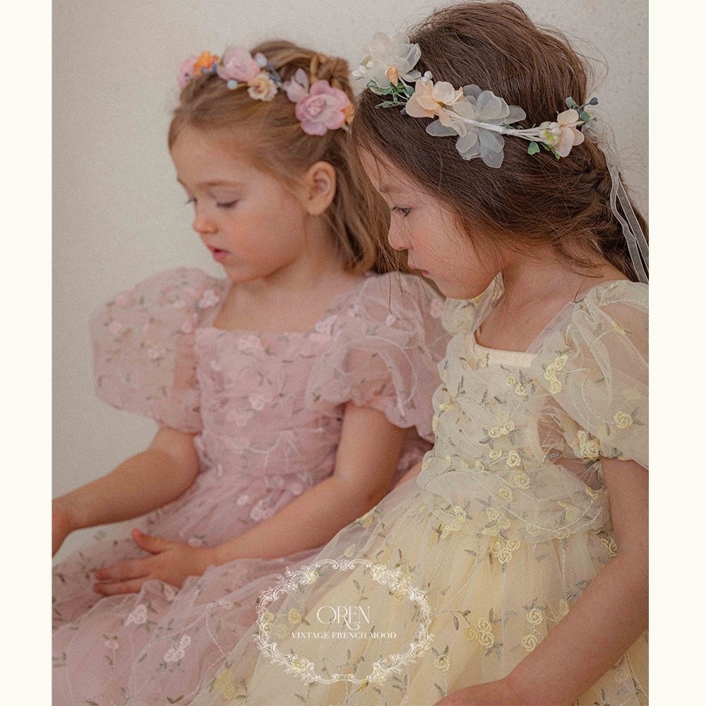 精緻的花卉刺繡和柔軟的薄紗面料相結合,營造出輕盈浪漫的氛圍,而蓬鬆的輪廓則讓孩子的一舉一動都顯得更加 可愛。